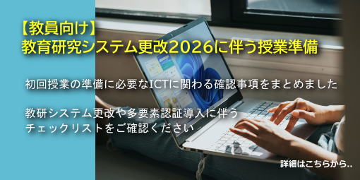 | 2026年3月10日 | 【教員向け】2026年度教育研究系システム利用についてのお知らせ |
